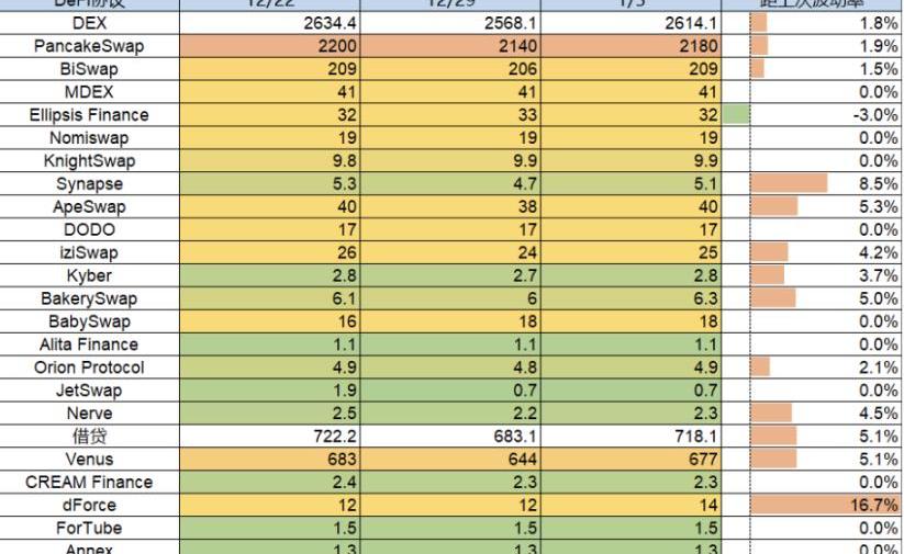 本周TVL小幅反彈,上升0.76B,較上周增幅為1.95%。其中etheruem鏈上的TVL小幅上升0.8%。Layer2的幾條主流公鏈,avalanche、optimism、polygon、arbitrum中均為小幅上漲趨勢。
