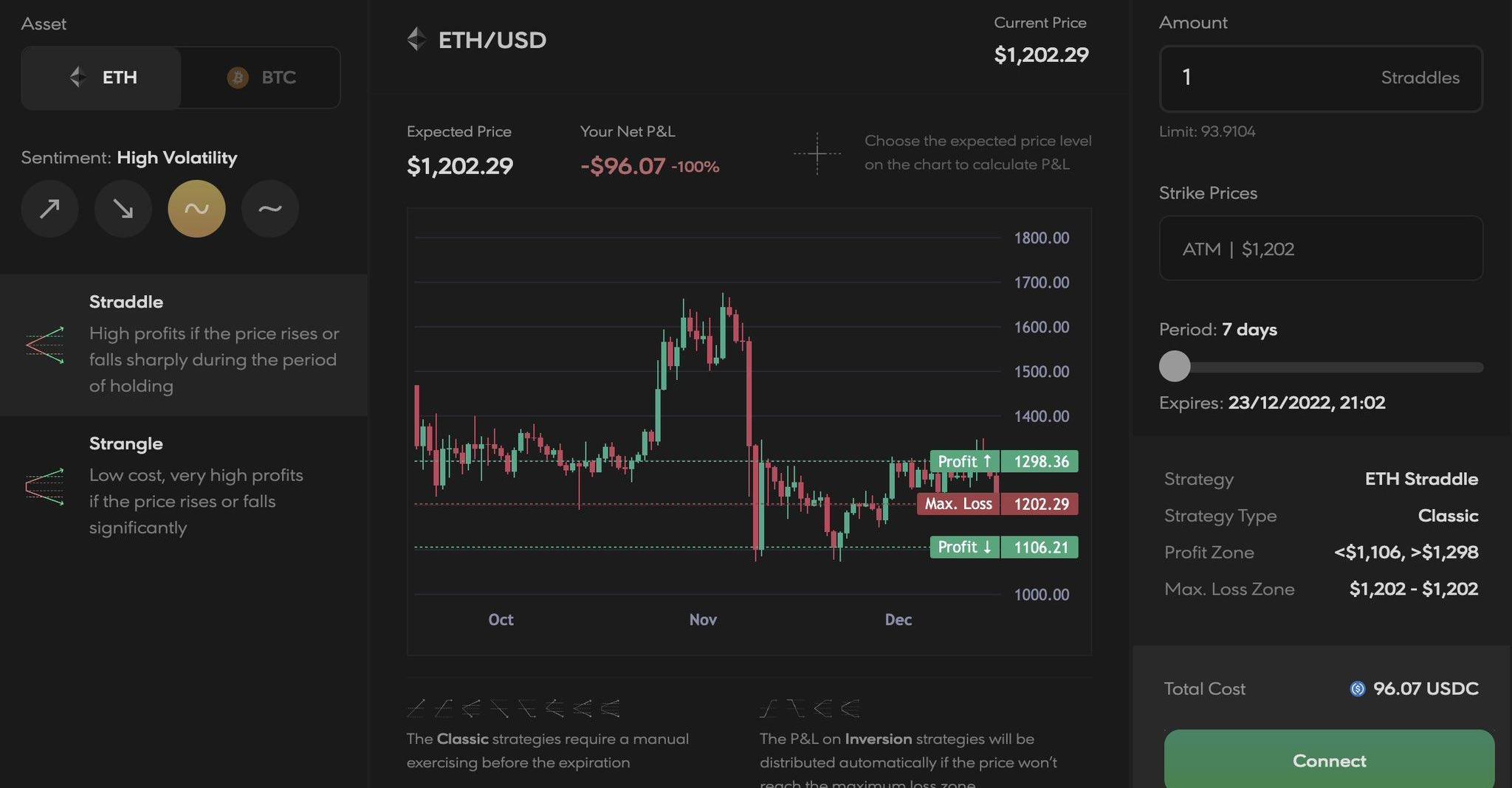 相反,Straddles可以讓用戶從波動中獲利。用戶可以直接購買Straddle,押注波動性;或者為Straddles提供流動性,從買家那里賺取期權費。