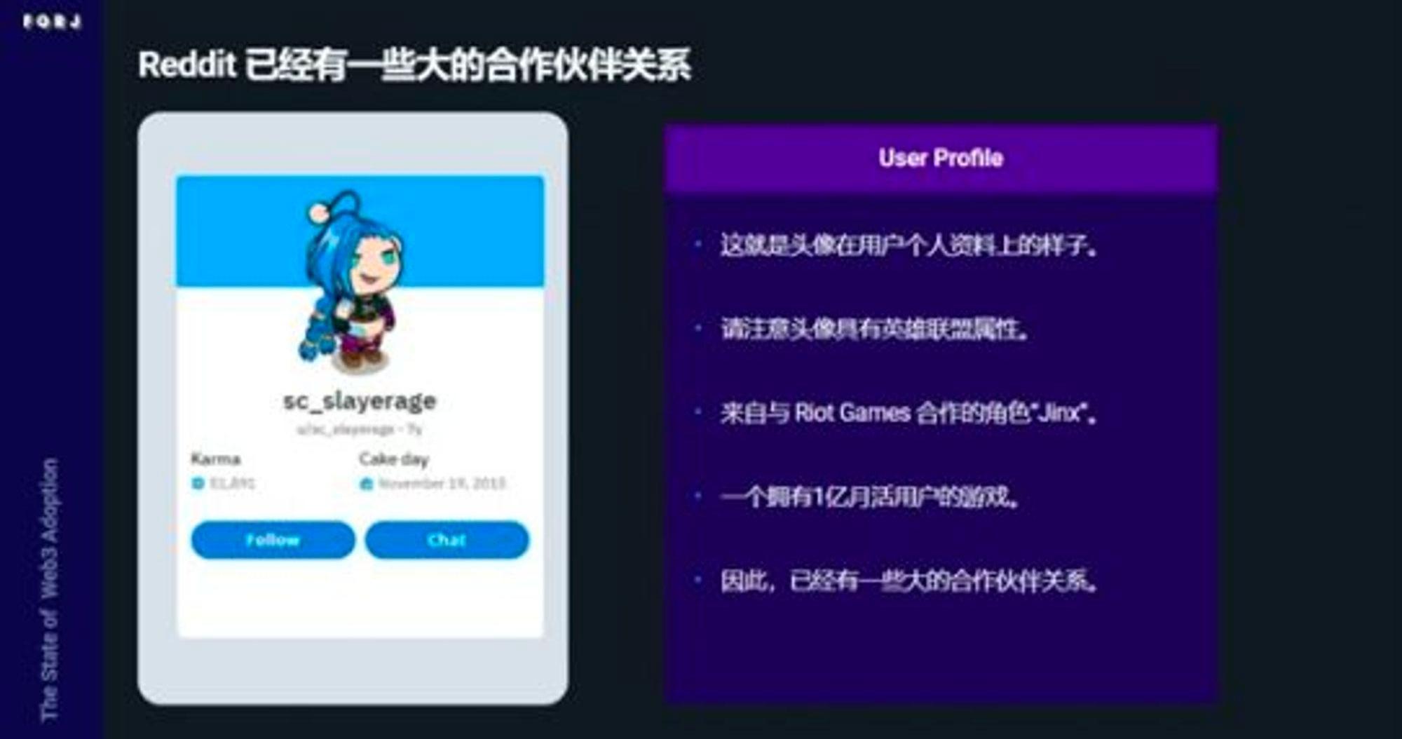 Reddit是一個娛樂、社交及新聞網站,他在一個月的時間,推動4300萬用戶進入「Web3」。之所以加引號是因為很多用戶并未直接了解Web3,只是利用Reddit創建了錢包,購買和交易了NFT。截止報告發布前,其NFT頭像持有者已經超過400萬。