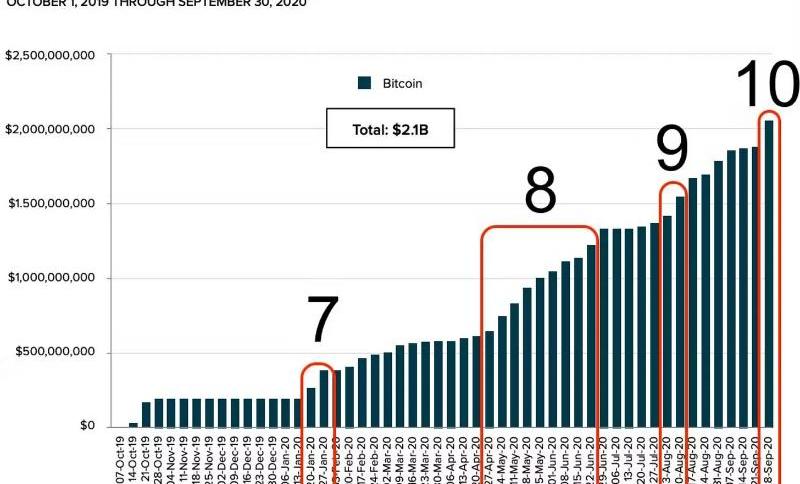 然而,這還不夠。Grayscale在2020年的最后10周內流入了超過25億美元的資金。