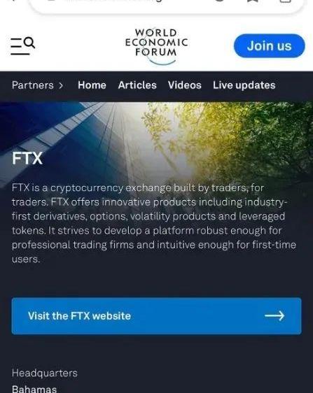 世界經濟論壇此前將FTX列為其合作伙伴之一,稱這家總部位于巴哈馬的公司是“由交易員為交易員建立的加密貨幣交易所”。