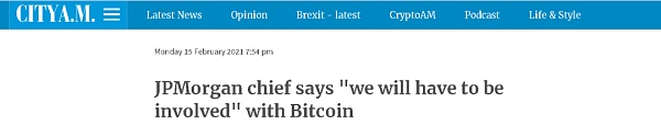 ▲摩根大通宣布,我們必須涉足比特幣業務。