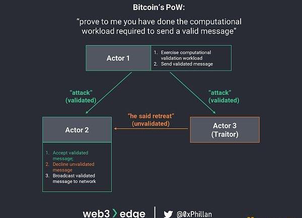 在學術界,這個問題被稱為拜占庭將軍問題。這個問題描述了這樣一種情況:一個系統的行動者必須在戰略上達成一致,以避免災難性的失敗,但系統中的一些行動者是不可靠的。