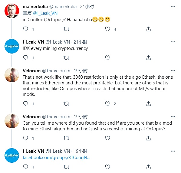 @ I_Leak_VN的推文發布后,有很多熱心網友和礦工群體進行了評論,其中有不少聲音表示,圖中使用的挖礦方法不是針對以太坊,而是conflux,這是一種不同的加密貨幣,并且Nvidia可能尚未限制其哈希算法,因為Conflux使用了Octopus算法。