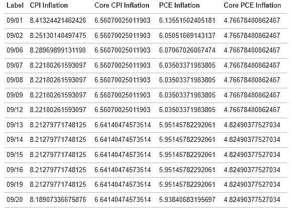 但是從目前對于九月份的CPI數據預測來看,雖然能源有繼續下降的趨勢,可以降低CPI的同比,但是去除石油和食物的核心CPI因為房價的問題目前還是處于較高的位置,導致同比的核心CPI反而有繼續上升的趨勢,從這樣的數據來看,石油的下跌只是因為拜登釋放低價的石油儲備倒逼市場降價,但其實通脹并沒有緩解。
