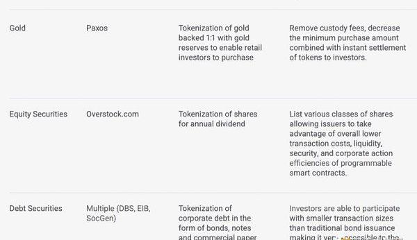 鏈下資產上鏈也可以增加DeFi中資產的種類。ReFi讓碳排放額上鏈是一種實踐;而更大的實踐在于傳統金融資產的上鏈。目前很多投行正在把privateasset做tokenization,下圖列出了一些tokenization的例子。