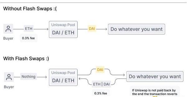 閃兌功能允許用戶在UniswapV2上提取任意數量的ERC-20代幣,且無預付成本,僅需在交易結束時支付0.3%的費用。用戶獲得代幣后,可進行任意操作,但必須在交易完成時歸還代幣。閃兌交易具有原子性,若結束無法歸還代幣,則所有交易將被回滾。