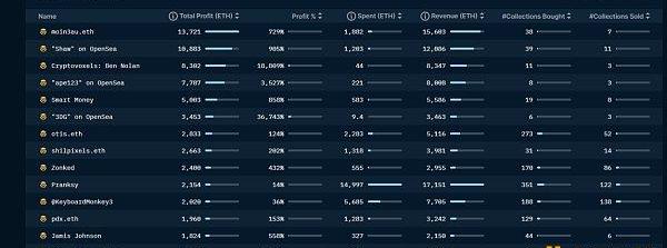 在不到兩年的時間里,這款錢包在其原始投資倒手轉賣NFT上的收益超過了10倍,而Shaw是NFT交易的典范,這使得這款鯨魚錢包成為追隨者的絕佳選擇。