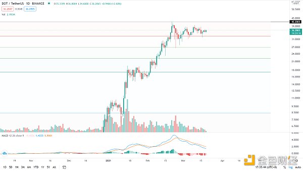 萎縮的成交量和粘合的指標線預示后續將要到來的變盤,后續將會配合大盤迎來變盤,日線壓力32美金,短期支撐28美金,趨勢支撐23.3美金。