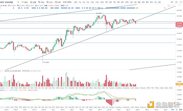 繼續按前期提示的,短線守倉底線33美金,趨勢支撐27美金,不破就持有,日線MACD低位金叉后,有望重回前期強勢。