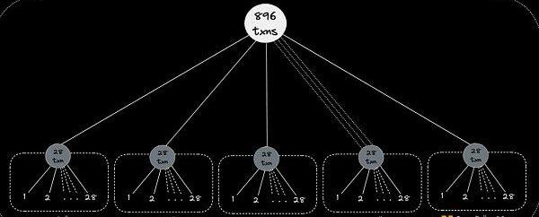 上面的插圖是一個升級后的外部rollup證明,它由32個內部rollup處理的28個客戶端證明所組成。在最新的升級之前,一個外部rollup只由4個內部rollup組成。