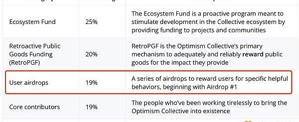 錯過也不必遺憾,因為根據Optimism官方文檔和經濟模型,空投激勵占代幣總額19%,第一輪僅分配掉5%,還有14%預留給未來的社區空投。